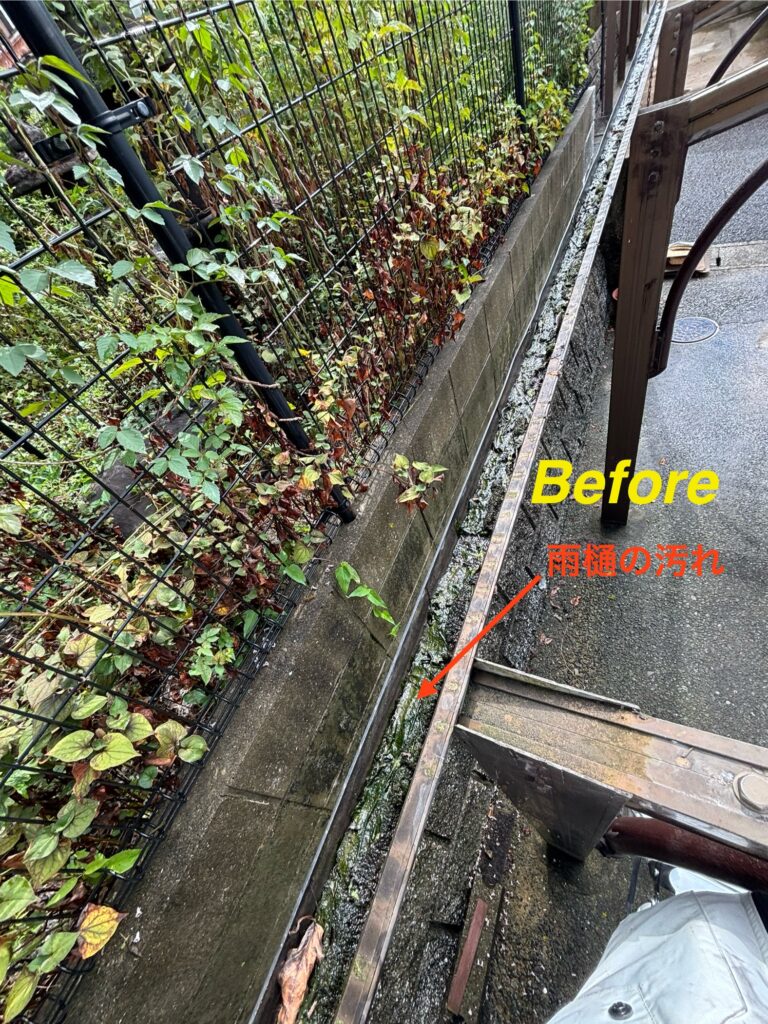 カーポートの雨樋いには、7年分の沢山の汚れが溜まっているのでは?(汗)