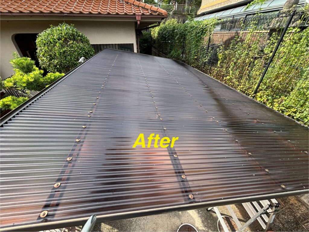 遮熱性のある波板になったで、まだ暫く続きそうな猛暑でも以前より駐車中の車内温度は抑えられるの