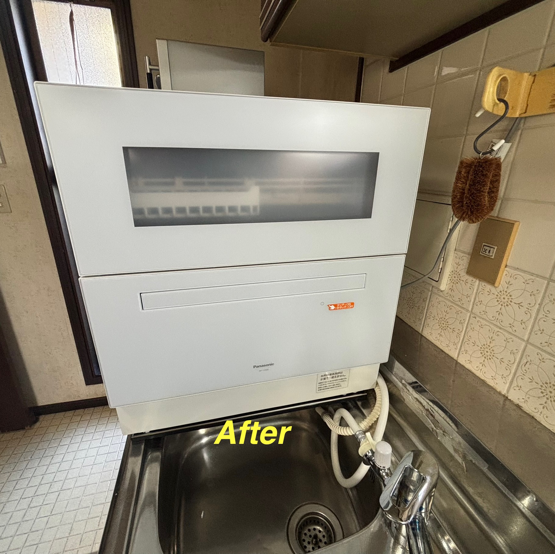 2025.06.17 今回はリピーター様から"食洗機"の購入を検討されているとの御相談でした。 まずは家電量販店でカタログを入手し、各店舗での価格情報(本体価格と設置費用)と 保証内容の収集→御客様へカタログと価格/保証内容のメモと一緒にご提示。 娘さんと一緒に機種を決められるとの事でしたので、 取付けに必要なパーツ関係を調べて数日後に訪問させて頂くと 『食洗機本体は購入してくるので、設置だけお願い出来るのかしら?』 との御相談を頂きましたので、快くお受け致しました♪ 後日購入されたとの御連絡を頂きましたので、 早速設置をさせて頂いた上で取り扱いのご説明を。 『食後は楽しいテレビを観ながらゆっくりと寛げる〜♪』と、 大変お喜び頂けました♬