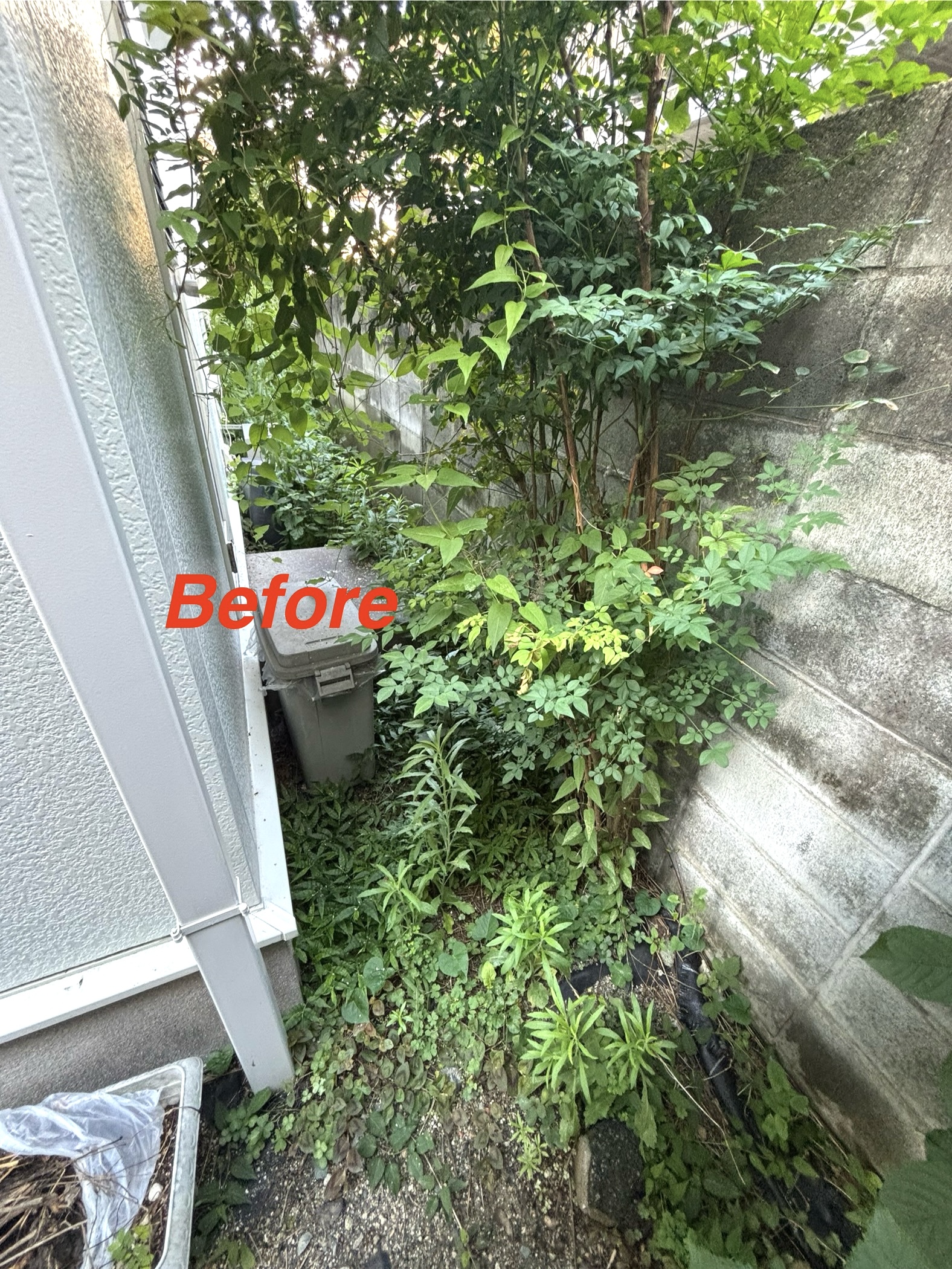 2025.06.30 今回の御依頼は、お庭の剪定と草取りでした。 1年程前に剪定をお願いした業者に再度依頼をしたものの、 全く来てくれる様子が無いとの事で、お声掛けを頂きました。 今年は雑草の成長が半端なく伸びきってしまっているのでと "草取り"の御依頼も一緒に頂きました♪ 裏庭に行くのには掻き分けて行く必要がある程に成長しています(汗) それなりの発生材の量となりましたが、 作業をさせて頂いていた私自身もスッキリ感(笑) 御客様は『裏庭に廻るのが億劫でなくなった!』と大変お喜び頂きました♬