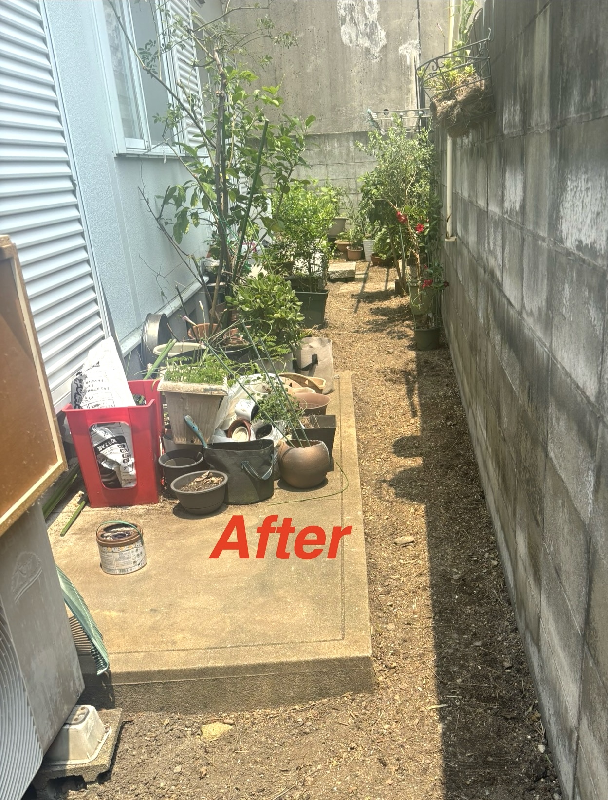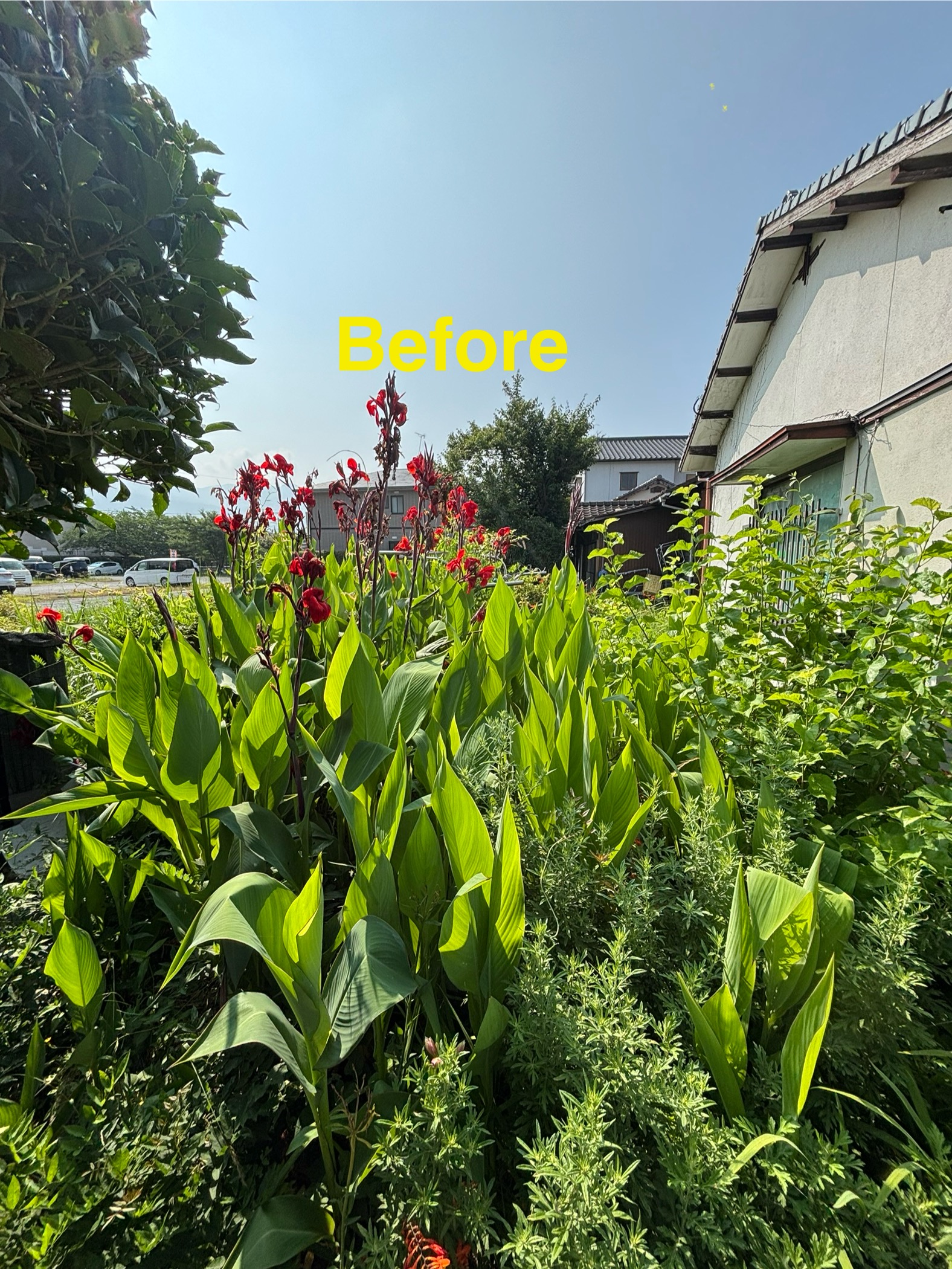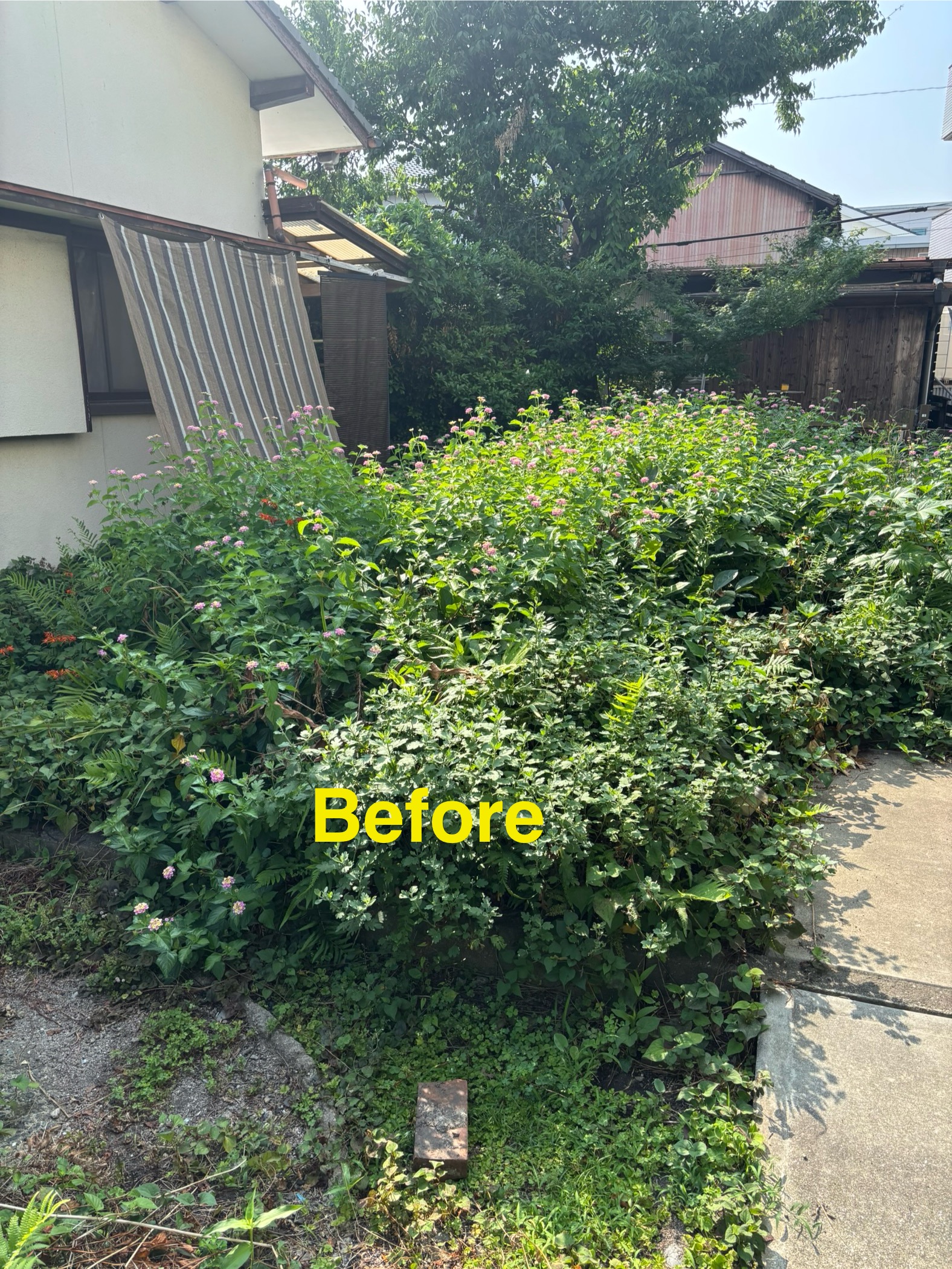 2025.07.10 今回は、母親がお世話になっているケアマネージャー様からの御相談でした。 ケアマネージャー様が担当されている御客様のお庭の"草刈り"です。 5月に"草刈り"を検討されているとの事で、 一度現状の下見に行き御見積もりをご提示しておりました。 その際は別の出費予定が入った為、見合わせをされたのですが 6月の梅雨を境に、かなり雑草の丈が伸びてしまったから(汗)と再度の御相談。 更に伸びている状況であれば、通常は処分する草の量もその分増えるので 状況に合わせて追加料金が発生するのですが、今回は特別に5月時の金額でさせて頂く事に。 実際の作業時に訪問したのですが、予想以上の伸び具合(約2倍)に驚愕💦 刈った雑草の量も予想以上で、2日間作業となってしまいました(汗) 作業前の状況を知っているだけに、作業完了時の爽快感は半端なかったです(笑) もちろん、御客様は大変御満足された様子でした♬